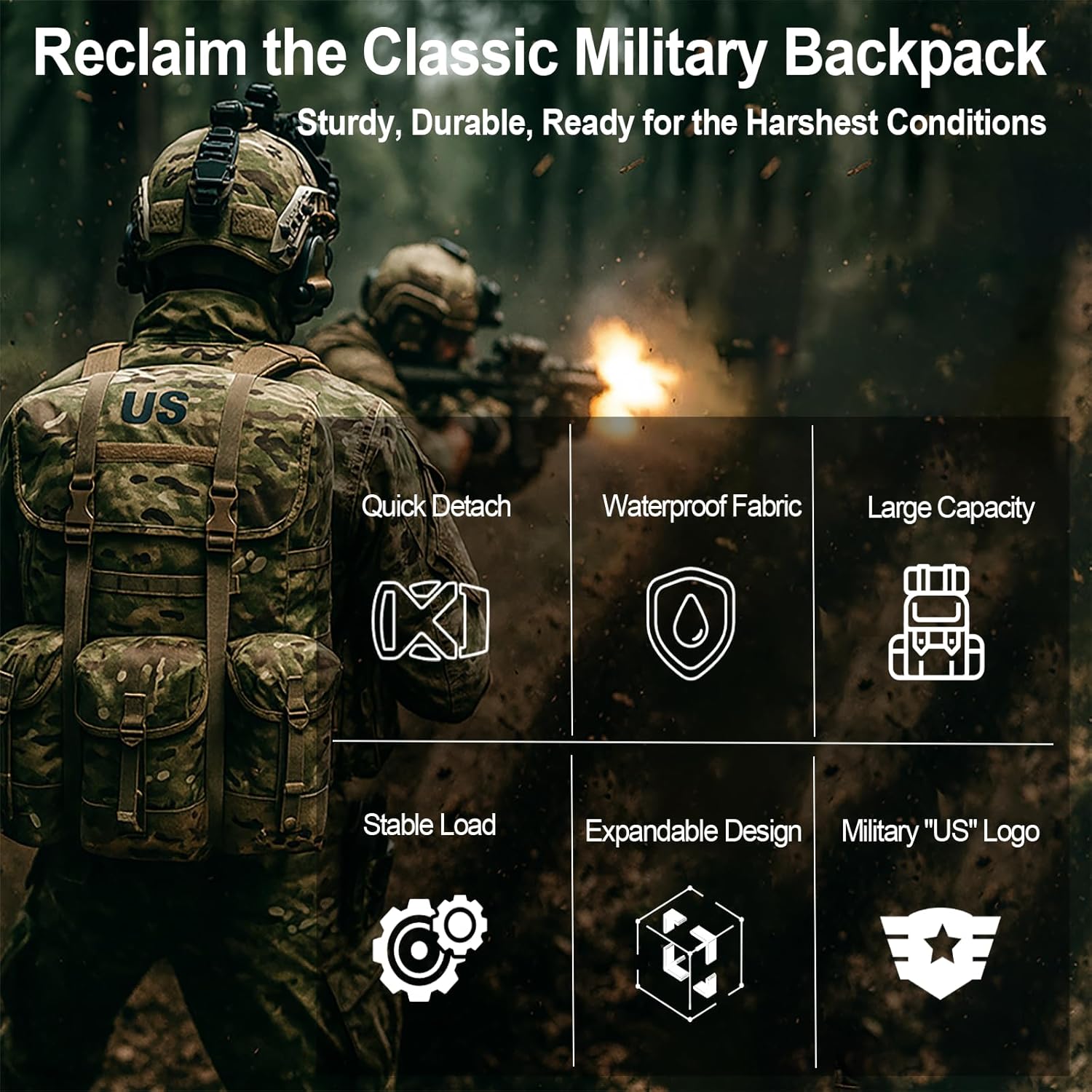 Equipped with military-grade features: aluminum quick-release buckles, reinforced straps, adjustable body-hugging fit, and bold "US" marking. Every detail is built for mission-critical performance and long-term durability.