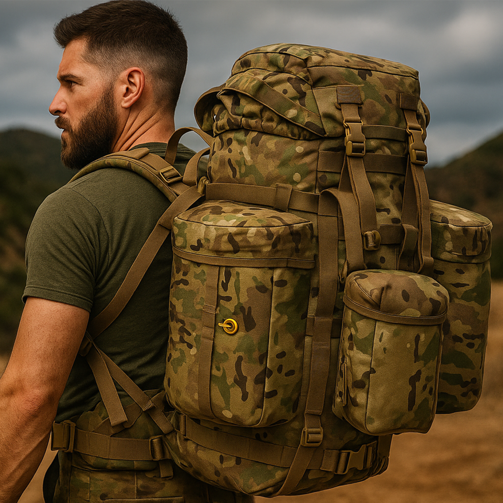 Military camouflage design with heavy-duty buckles — rugged, reliable, and built for adventure.
