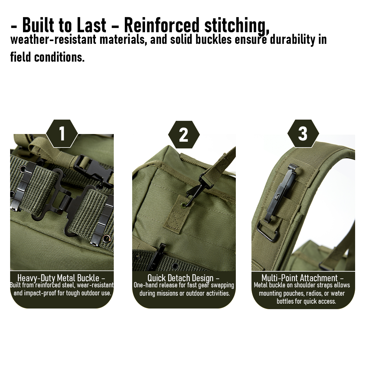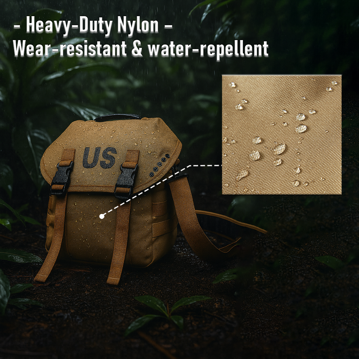 Made of heavy-duty 1000D nylon with water resistance, perfect for rugged Army and outdoor use.