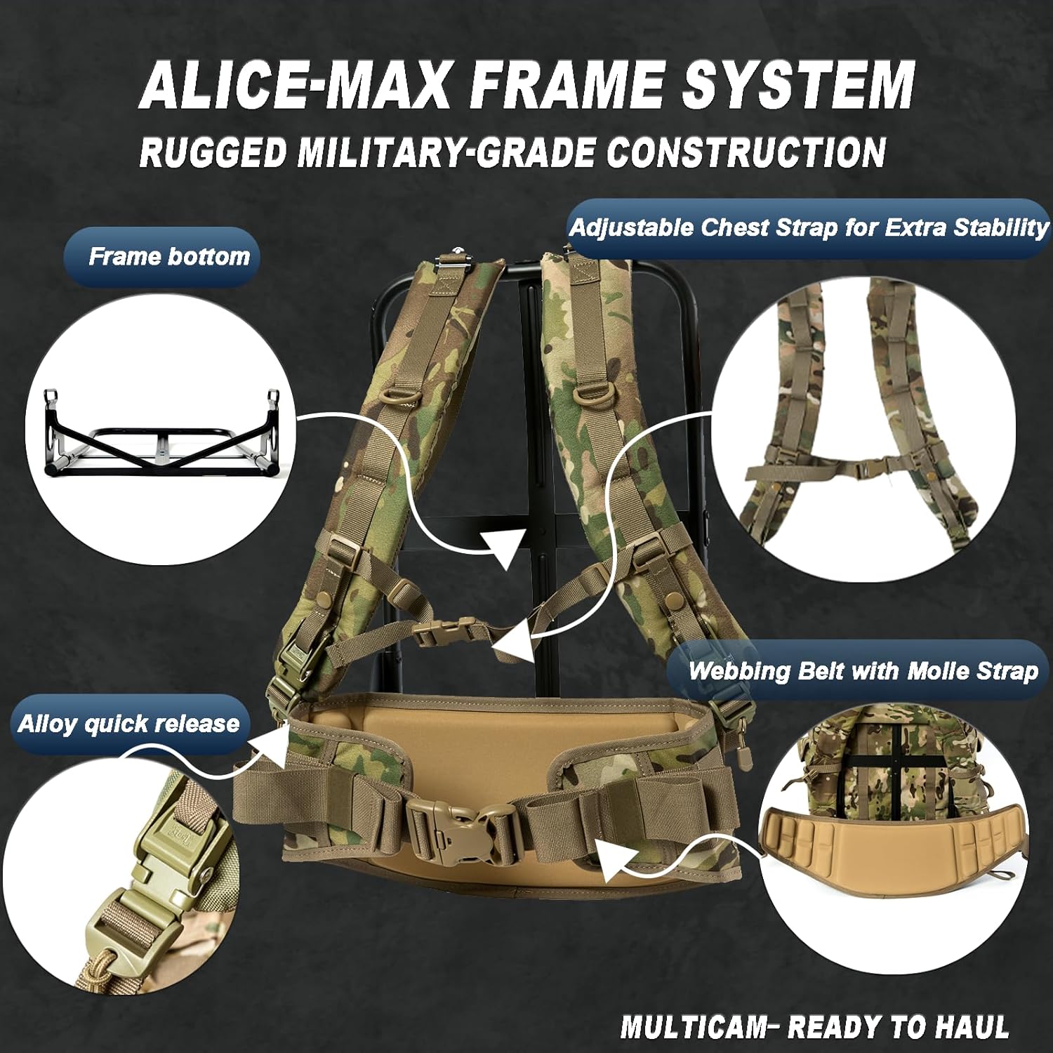 AKmax Military Alice Max Pro Pack Frame with, Kidney Pad & Waist Belt (ALICE frame Max Multi-terrian)
