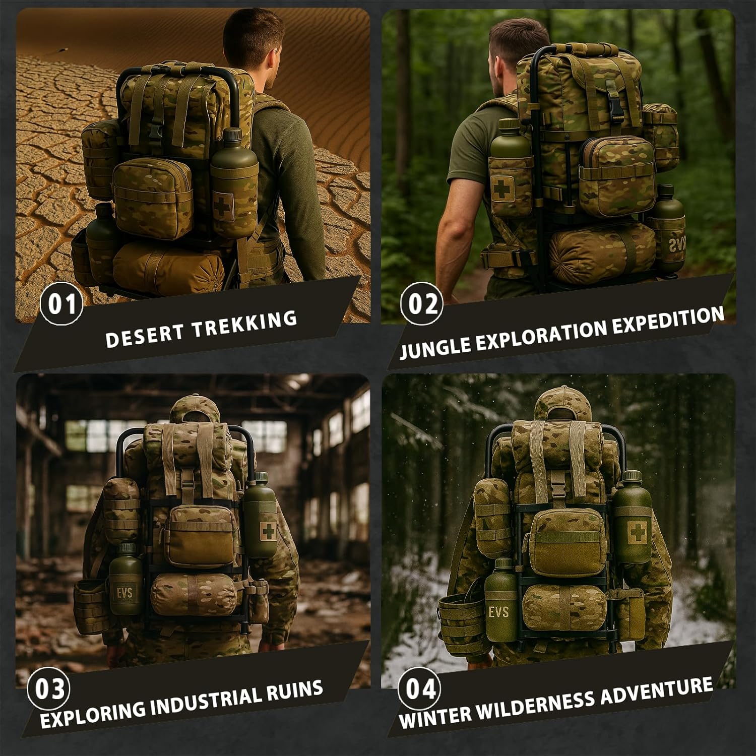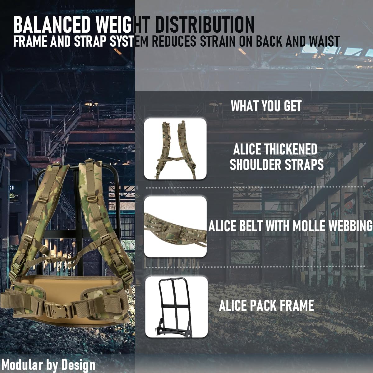 • The frame comes with multicam waist belt and shoulder straps, It can help relieve pressure.